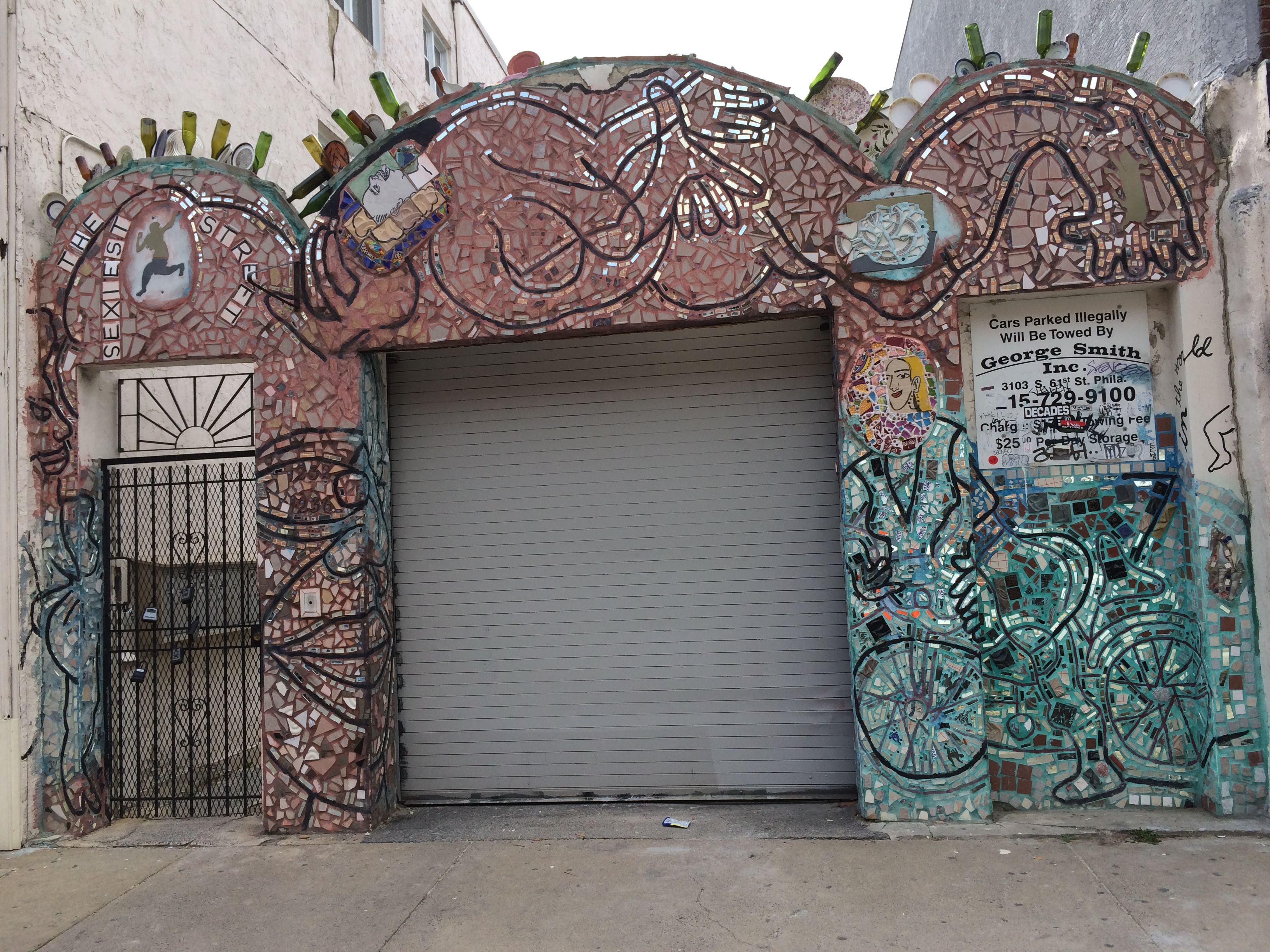 You know, somewhere in the middle of my expedition I realized something that never had dawned on me before. Namely, despite the murals that gas things up on certain blocks, most of Philadelphia’s residential streets, beautiful and architecturally rich as many are, sure appear tame when it comes to color. This ain’t exactly a news flash to the oceans of people more observant than I, but it’s true. And it’s largely because of bricks, bricks, bricks, the quintessential and earth-toned building blocks of Philadelphia. Bricks are sturdy, bricks are quaint, bricks have been with us humans for thousands of years. But man, I can understand how someone might decide that a brick-dominated landscape needs to be jazzed up. Someone named Isaiah Zagar, for example.