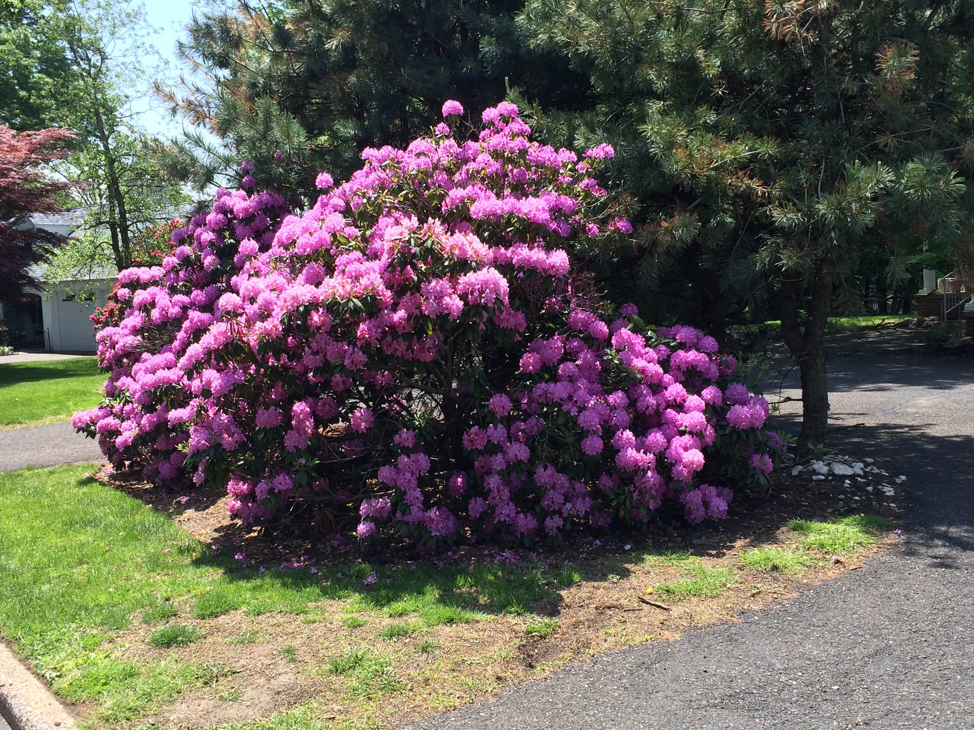 Amazingly, the stroll around my little corner of the Philadelphia burbs was my first since last December, a nighttime excursion I undertook to gaze upon Christmas lights. I wrote a story about that adventure, and if you’re interested in reading it you should click right here. Last week’s stroll was different. With my trusty iPhone in hand I hit the streets for an hour in late morning, looking for pretty flowers to admire and photograph. Particularly those on trees and shrubbery. The sun was beating down rippingly as I left the house, the temperature already about 85° F, and the humidity was formidable. But I was late for the party. Turns out that virtually all of the flowering trees, and most of the flowering bushes, already had dropped their glitter.