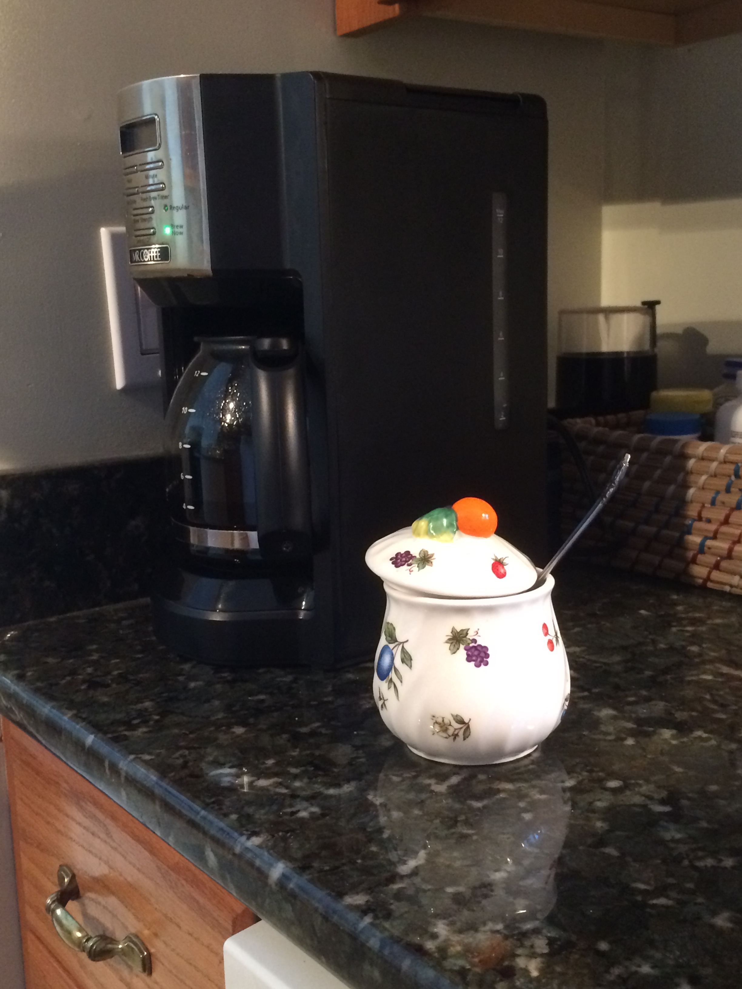 img_1013img_1031A silver sugar bowl. From the 1770s. Made in Philadelphia. That’s the Shields piece I looked at and admired. It’s beautiful. Shields was a well-known Philadelphia silversmith in his time and obviously damn good. If he were alive today I’d buy one just like it from him. It would look a whole lot better sitting next to Sandy’s and my Mr. Coffee machine than the bowl we’re currently scooping out of.