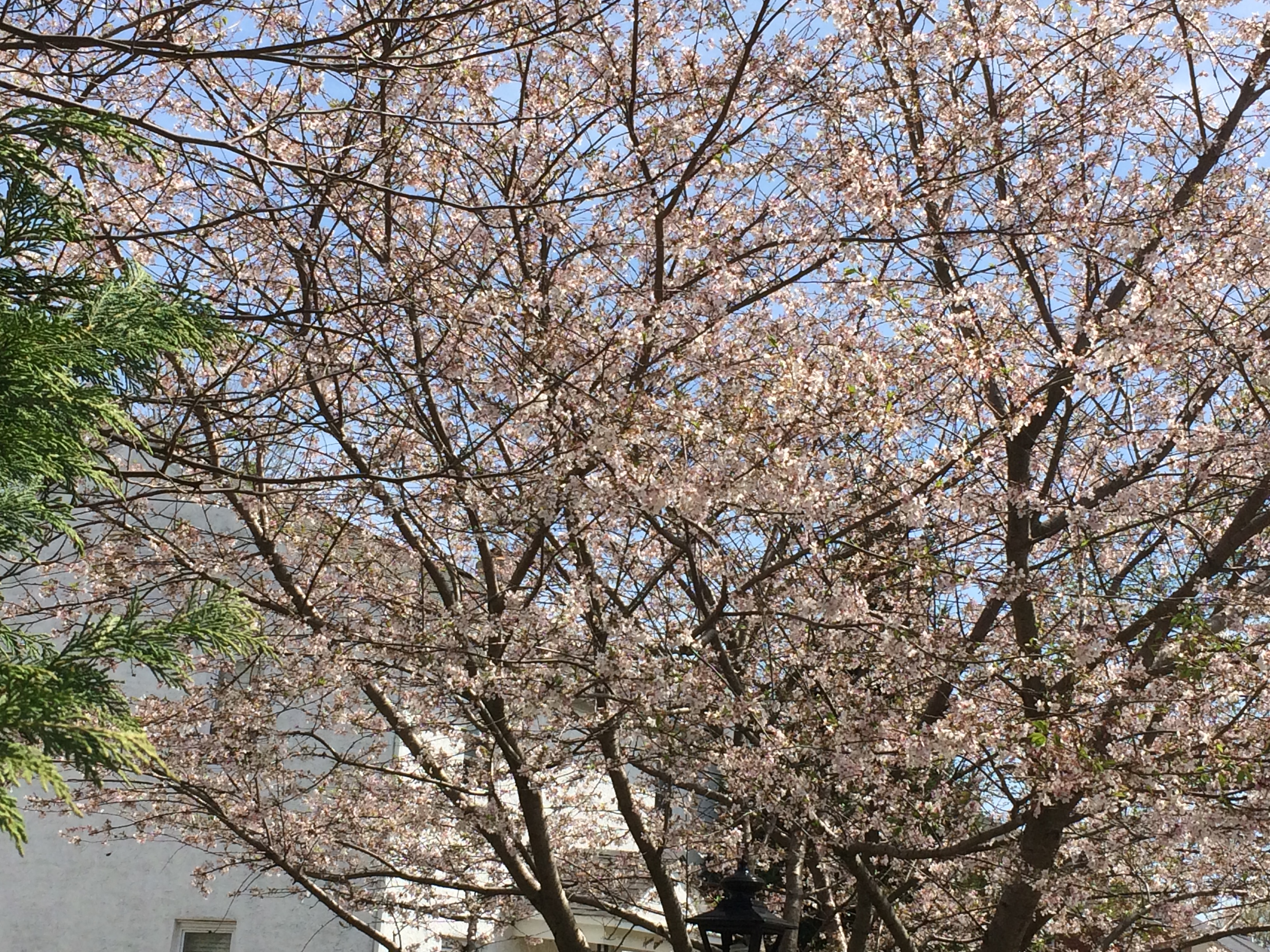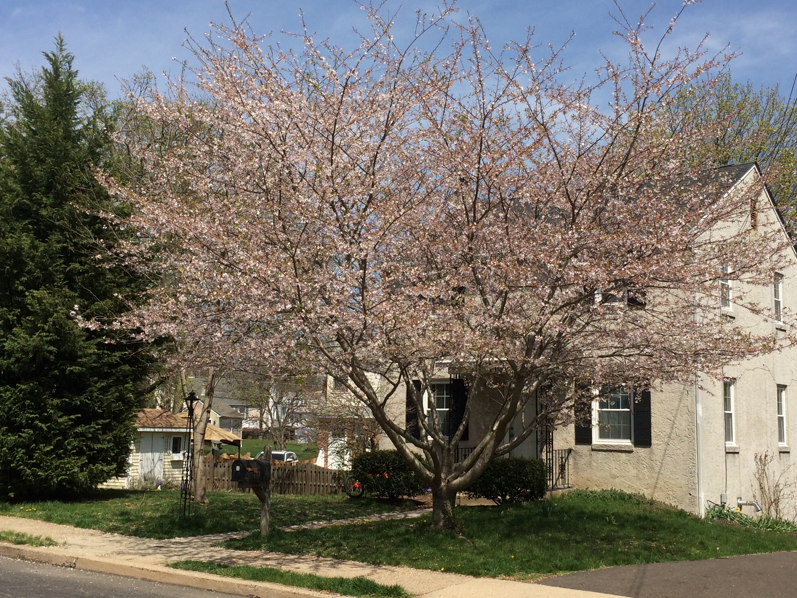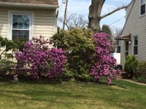 And so I spent an hour and a half in early afternoon wandering, on foot, in three of my town’s neighborhoods, including my own. These are modest areas filled with no-nonsense homes from the last century’s early and middle sections. Things are neat and tidy here, but usually not exactly eye-grabbing. But when cherry and dogwood trees and azaleas and rhododendrons and all the rest open their floodgates, watch out! The streets then, for me anyway, rise above snooziness. Charm and loveliness take over.