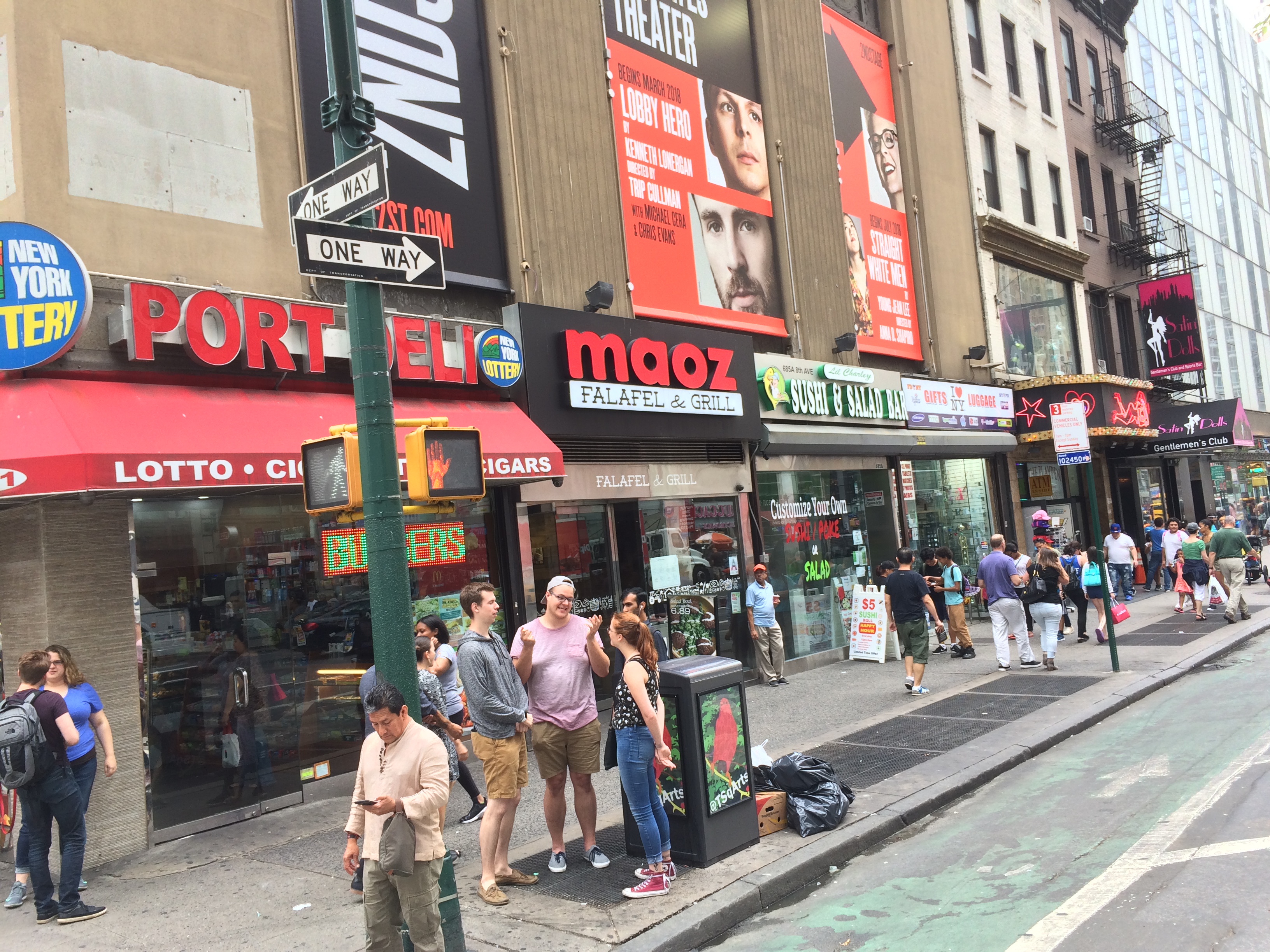 But my bus wouldn’t be leaving for an hour and a half. I had time to kill. And what better way to do that than to stroll along some of the streets of Hell’s Kitchen, the Garment District and Times Square. Those nifty sections of the city run into each other, and would keep me close to the Port Authority bus terminal, from which my Philadelphia-bound ride was scheduled to depart.