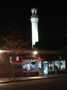 But more than anything, I get kind of weak in the knees when I’m near the Monument at night. When the Sun goes down, lights illuminate the giant. I don’t know, I guess I’d have to say that the nighttime Monument is one of the finest sights I know of, not only beautiful but curiously otherworldly. As my afternoon in Provincetown segued into night, I stared more than once at the Monument. And took a couple of pictures. One of them is the money shot.