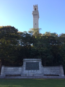 Funny thing about the Pilgrim Monument. It was created to honor the Pilgrims who voyaged in 1620 from England aboard the good ship Mayflower and helped colonize these here United States. They made their first landfall in what would later be known as Provincetown, before moving on soon after to a permanent home, across Cape Cod Bay, in Plymouth.