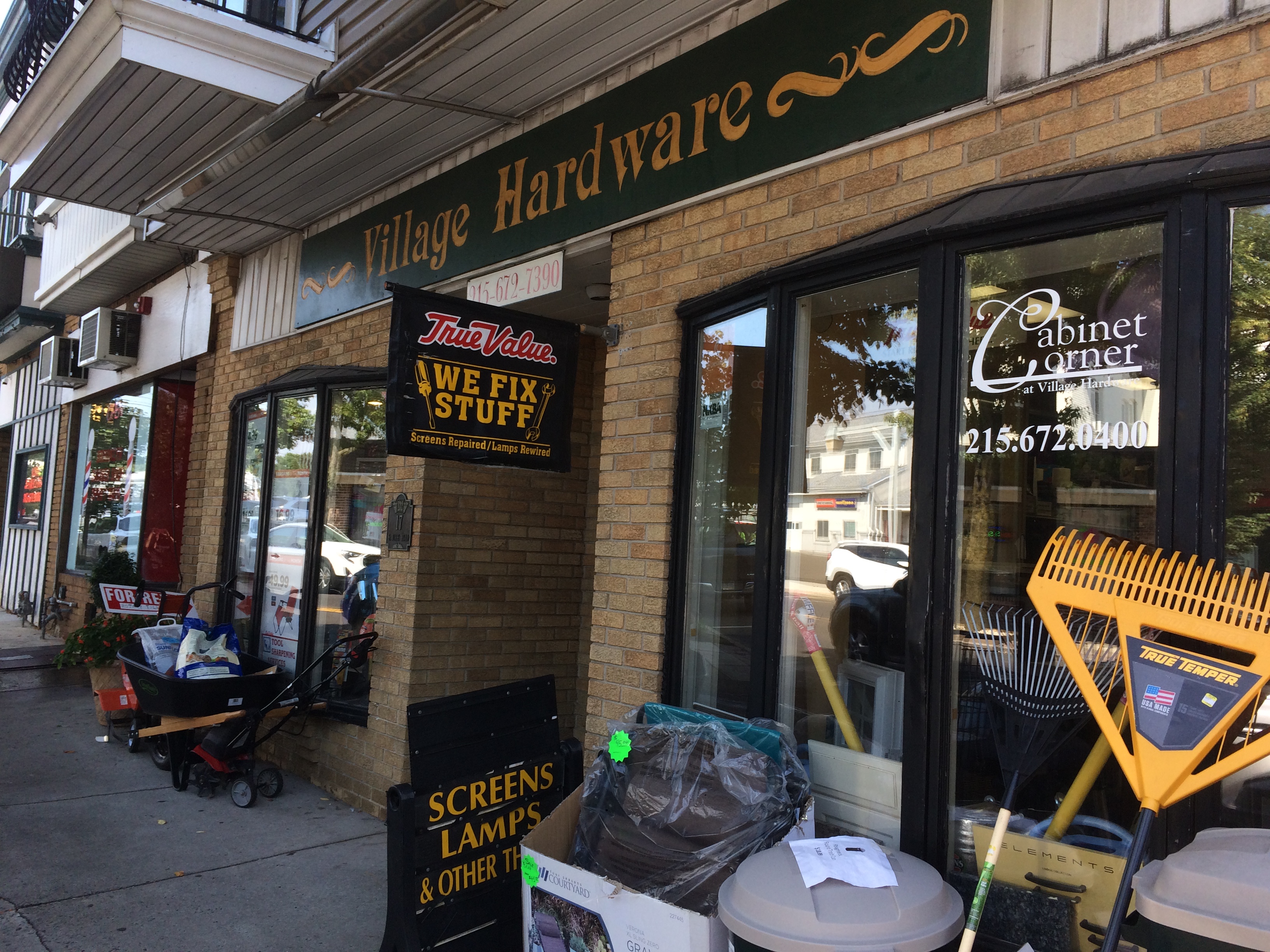 Not unusual for me, I took a lot of photos during the walk. At first I concentrated on bouncily-decorated storefronts and nifty store signs. Who would turn a thumbs-down on the Hatboro Barber Shop’s facade, a parade of red, white and blue? Or on Village Hardware’s “We Fix Stuff” sign, which succinctly (and hopefully accurately) tells a story. Nobody, I’m sure.