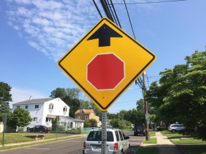 But halfway through the stroll my focus changed unexpectedly, as I became enchanted with the idea of looking for bright yellows. I guess it was a riveting yellow (and red and black) traffic sign on a residential block, meant to announce that a stop sign was ahead, that put the notion into my head. That and the fact that I was getting some exercise on a supremely sunny day, the Sun being the finest yellow friend that any of us ever will have. Ergo, a patch of yellow flowers aside a house became fodder for my phone’s camera. As did the golden arches of Hatboro’s McDonald’s franchise.