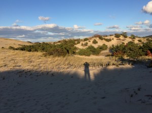 Hey Neil, glad to know I’m not the only person on the planet who takes “abstract art” selfies. As for dune walking, I agree 100% that it’s a beautiful thing–I walked many a dune along the beaches of Lake Michigan in my formative years, and a fair stretch of the Cape dunes, too, back when I had friends there. As for wise Sandy in the warm-ish car, well I hope she had the foresight to bring a good book.