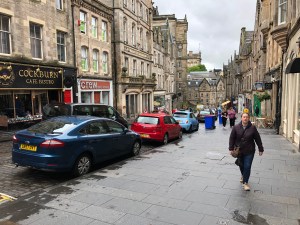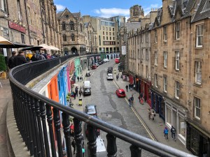 The sections of Edinburgh that visitors spend the most time in are Old Town and New Town. Old Town was the first part of the city to be inhabited, and though few ancient structures remain, much of what stands in Old Town is old enough, dating from around 1600 to the late 1800s. Old Town, built on a ridge, is heavily cobblestoned. It is peppered with winding streets and with alleys (known as closes) that often are steep and that connect one street with another. Ergo, Old Town is highly atmospheric. I preferred it to New Town, which actually is pretty old, but flatter, more open and far less funky than Old Town. And I wasn’t the only one who felt that way. Old Town was mobbed with tourists and locals while I was in Edinburgh. New Town was busy with people too, but less so.