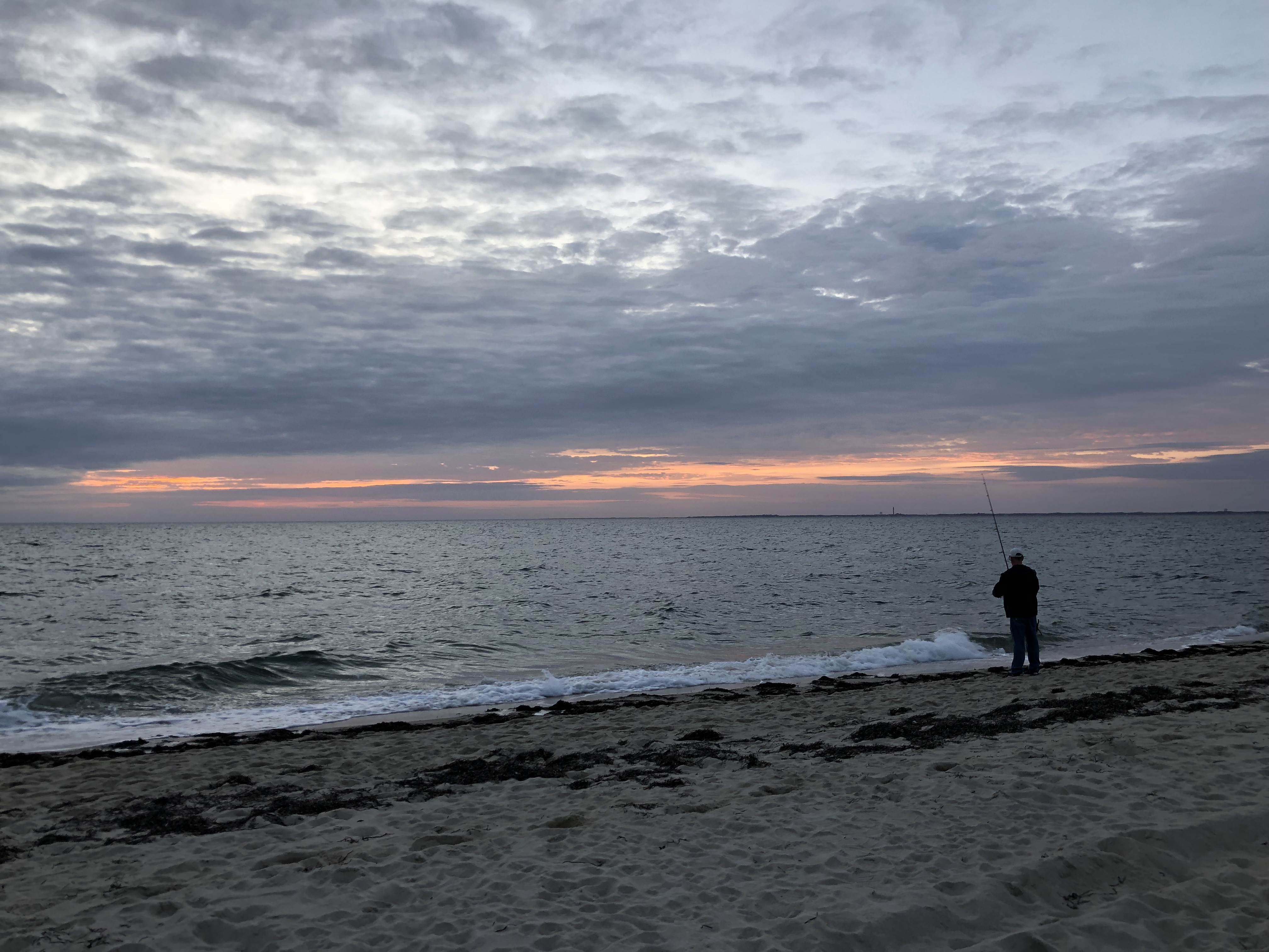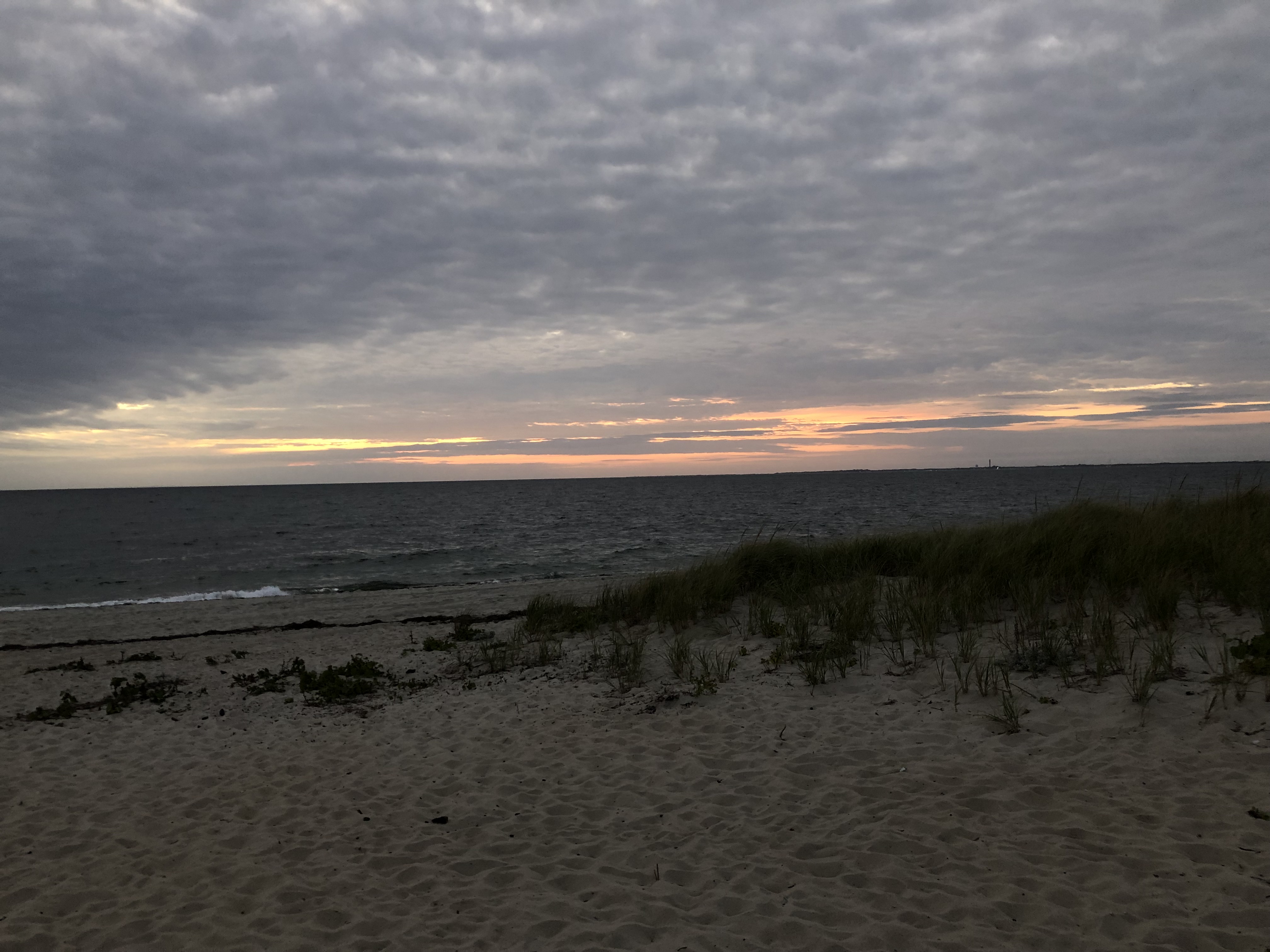 The sunsets took place over Cape Cod Bay, which abuts Cape Cod’s northern side. For sunset number one we took our positions at Rock Harbor, in Orleans. For the second we stood on the sands of Corn Hill Beach, in Truro. And for the third we gazed from Mayo Beach, in Wellfleet. I tell you, each of those locations is magnificent. The unfussy layout of all the pieces (sky, waters, sands, grasses) is as fine as you ever could wish to see. Hell, sunsets are the icing on an already-astonishing cake.