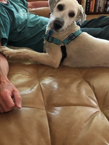 My relationship with Alfie developed, no doubt, due to my lack of hesitancy in patting his head and rubbing his stomach. Alfie, it was clear to me, couldn’t get enough of those forms of contact. As a result, before I knew it he was paying meaningful attention to me, often laying his head on my legs or resting one of his paws gently on my arm. And gazing with wonder and interest into my eyes. Which resulted in my petting and rubbing him even more than I had, cementing the feelings that flowed between us. Strong feelings, you understand. Alfie, you’re my kind of dog. That is to say, you like me!