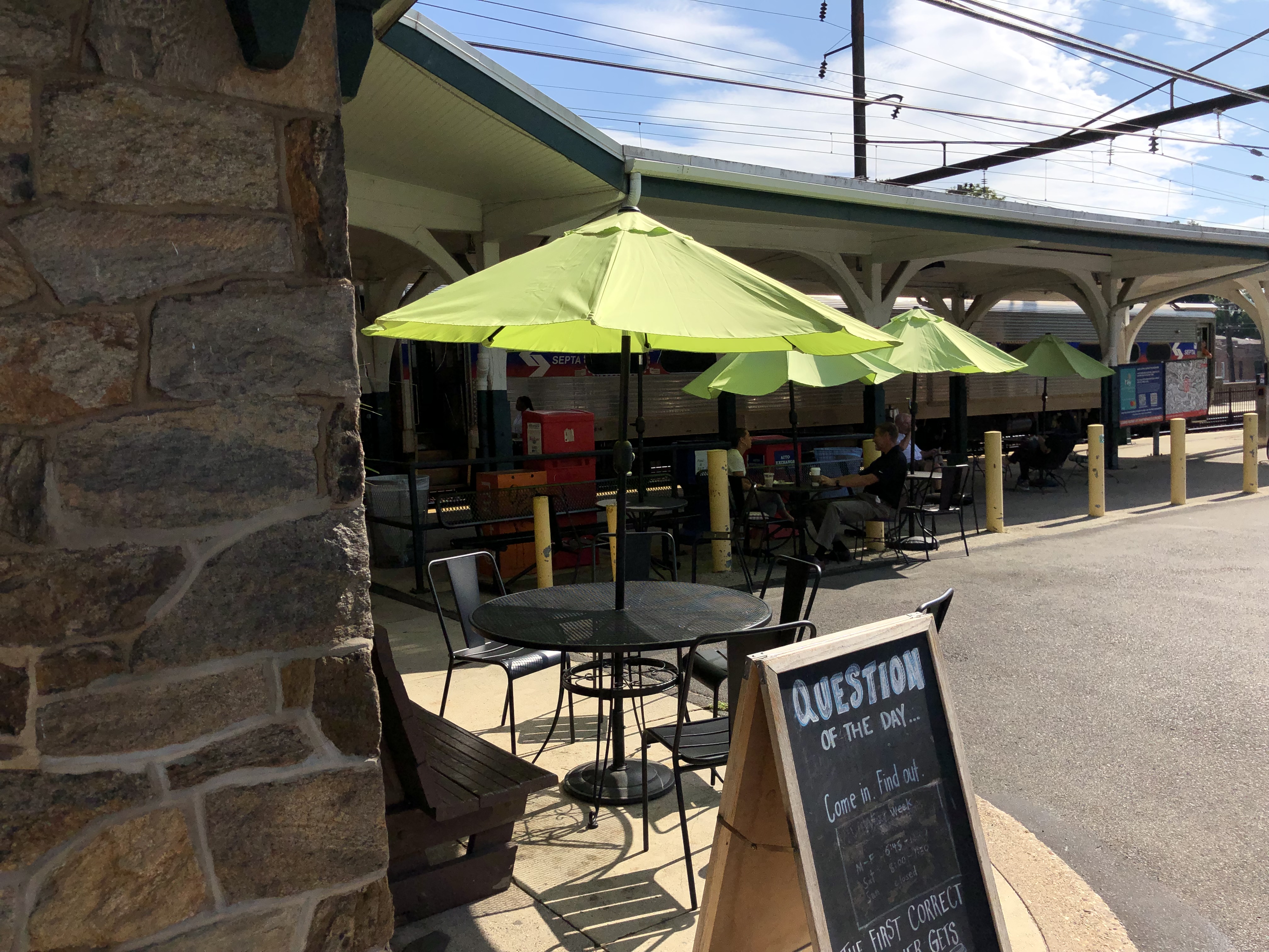 As did a subtler composition, one that centers around avocado green umbrellas. The umbrellas, belonging to a café at the Glenside railroad station, added a ton of juice to a setting that otherwise would have been described as drab, man, drab. I couldn’t take my eyes off of them.