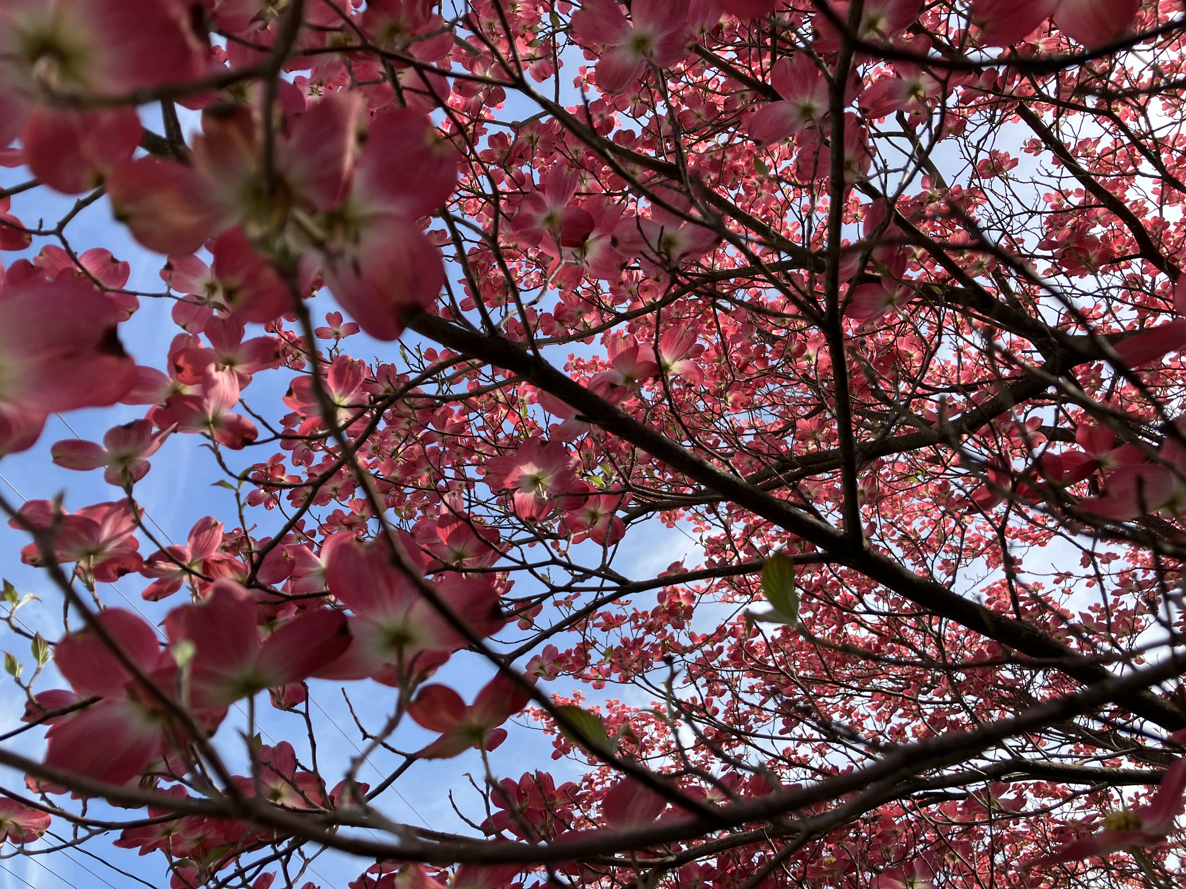 Two Thursday mornings ago I found myself in the mood to raise my ass off the living room sofa and take a stroll outside. So, I did. The ensuing 40-minute walk through my suburban neighborhood and an abutting neighborhood was a fine one. The skies were friendly and the temperature was pleasant. And many flowering trees were in blossom, their petals adding calming colors and healthful vibrations to the milieu. I got up close and personal with hundreds of those blossoms and photographed them. They didn’t mind at all.
