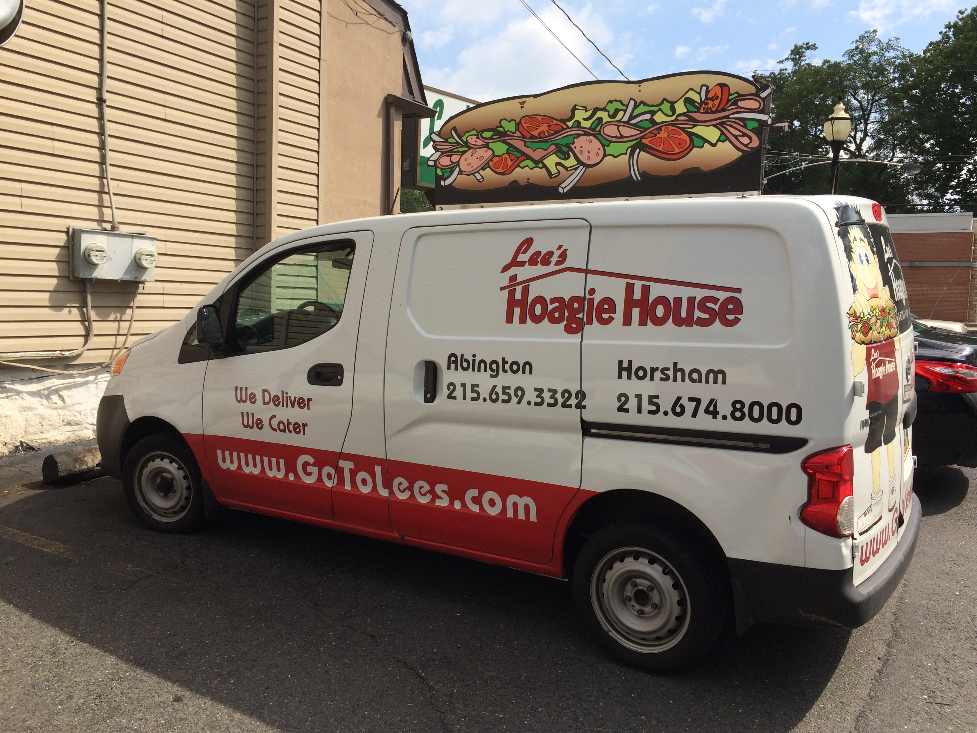 Which of the five do you like best? My top picks are Freda Deli Meats (see above) and Office Basics (see below). Freda’s bold colors are balanced carefully. They reach out and grab you, but don’t slap you too hard upside your head or upside any other part of your body. Hell, you’d have grounds for a lawsuit otherwise. And I’m impressed by the asymmetry of the Freda canvas, its righthand portion extending a couple of feet below the rest of the design. That’s a sophisticated touch you don’t see too often on vehicle art.